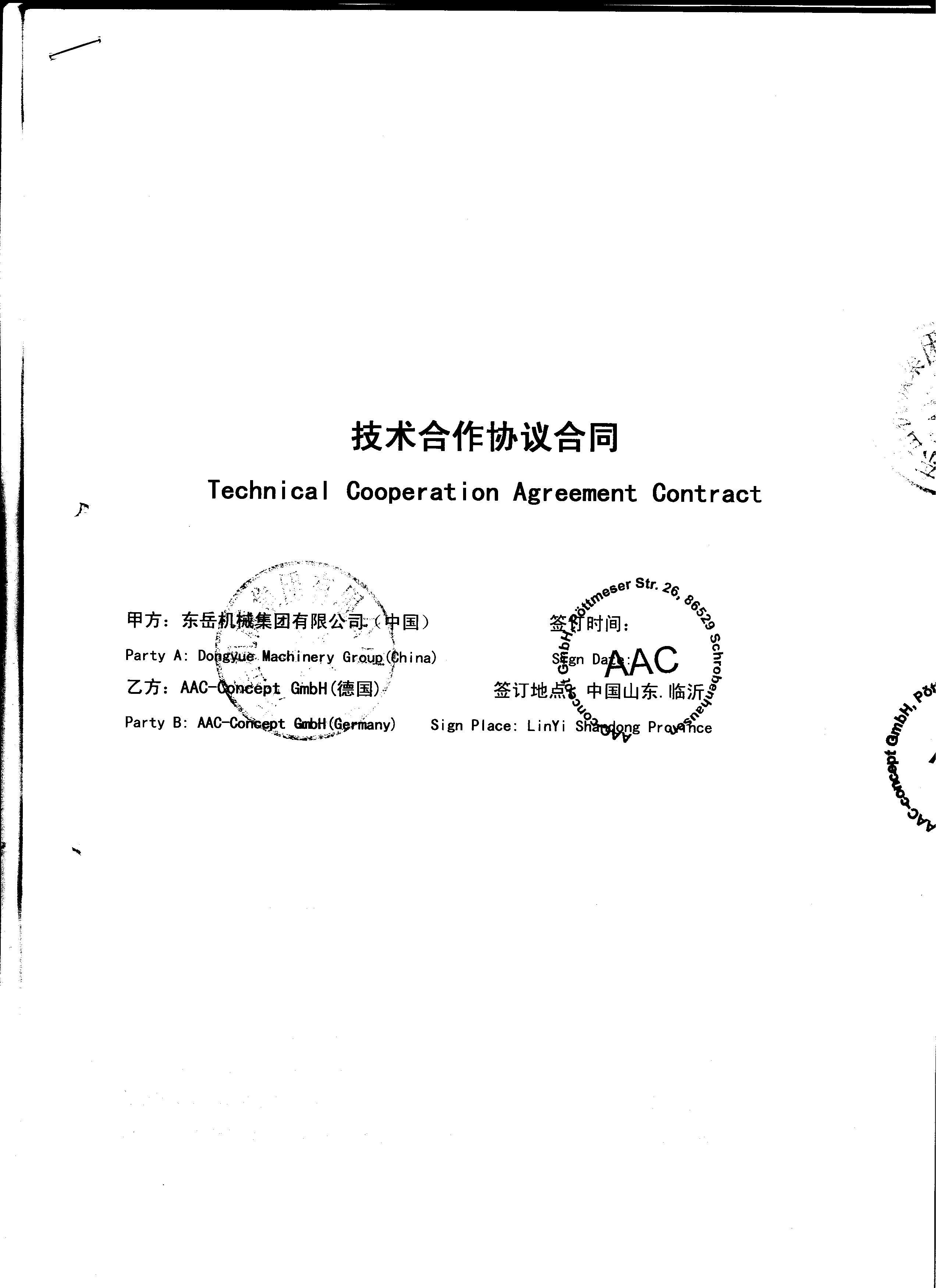 ?東岳機(jī)械股份有限公司與德國卡茨貝通集團(tuán)技術(shù)合作協(xié)議證明: