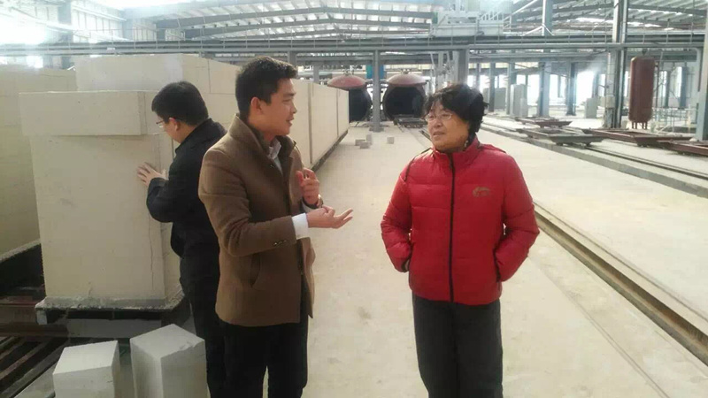 隨后,滕會(huì)長(zhǎng)一行來到東岳加氣混凝土生產(chǎn)線車間,對(duì)生產(chǎn)線的垃圾循環(huán)利用及節(jié)能環(huán)保等設(shè)計(jì)創(chuàng)新給予了充分肯定。希望能進(jìn)一步組織好調(diào)試生產(chǎn),針對(duì)煙氣凈化處理設(shè)備做好效果檢測(cè),真正把環(huán)保墻材生產(chǎn)建設(shè)落到實(shí)處,在行業(yè)起到表率作用。滕會(huì)長(zhǎng)參觀了東岳加氣混凝土砌塊生產(chǎn)線(板材生產(chǎn)線)、灰砂磚生產(chǎn)線,對(duì)示范生產(chǎn)線的運(yùn)行與循環(huán)處理情況給予肯定,對(duì)集成房屋的建設(shè)極力推廣。